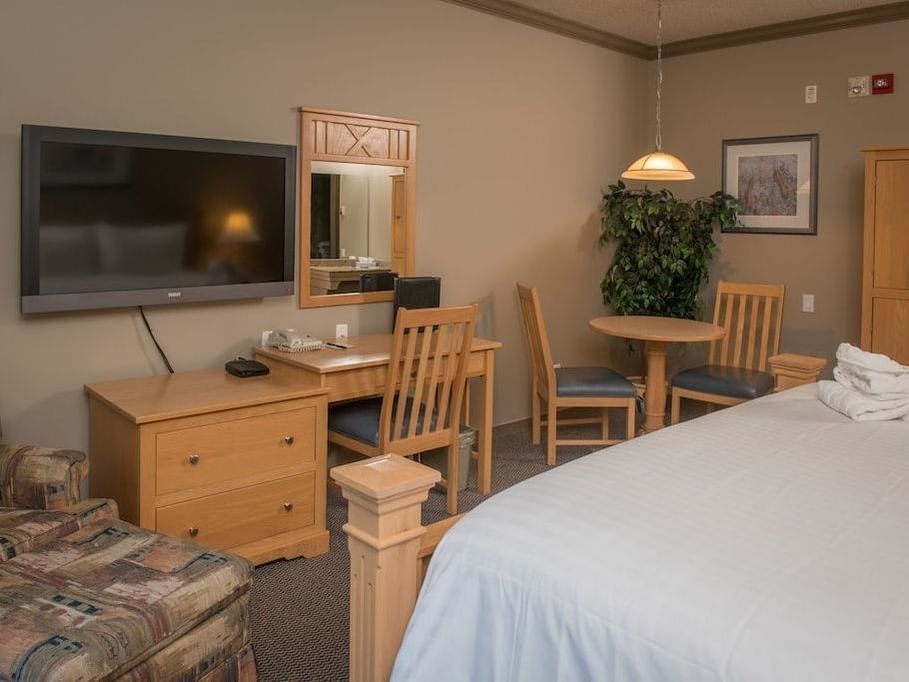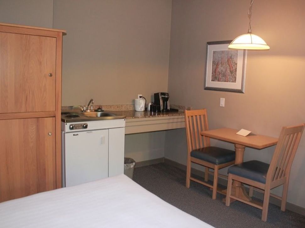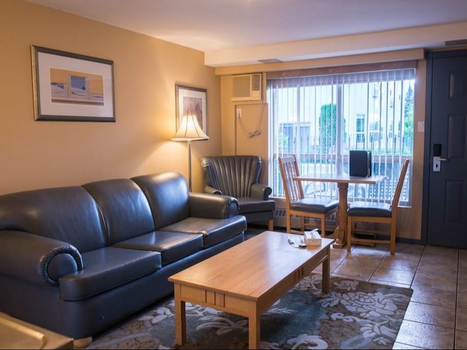 Accommodation options at the Hilltop Inn Salmon Arm hotel are arranged between two distinctive buildings. The Main Building consists of 47 spacious, richly appointed guest rooms with views of the lake, mountains, forests, gardens or pool. Select hotel rooms also boast poolside patios.